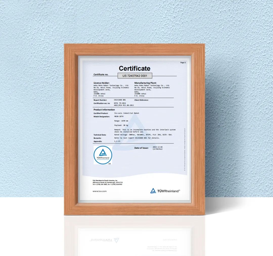 近日,在團(tuán)隊(duì)共同努力下,藦卡機(jī)器人產(chǎn)品經(jīng)過嚴(yán)格的測試、檢驗(yàn)、審核,憑借其高質(zhì)量和強(qiáng)有力的國際市場競爭力順利獲得了TüV頒發(fā)的北美認(rèn)證證書。此項(xiàng)證書不僅標(biāo)志著藦卡機(jī)器人產(chǎn)品符合國際相關(guān)嚴(yán)格標(biāo)準(zhǔn)和國際市場要求,同時(shí)也為藦卡機(jī)器人進(jìn)一步拓展全球市場奠定了良好基礎(chǔ)和強(qiáng)力的支撐。