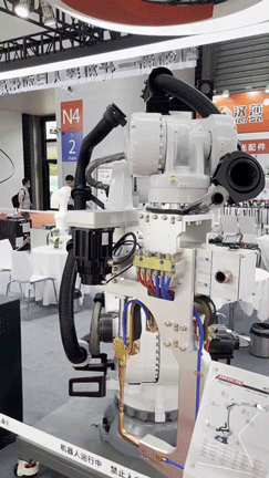 此焊接工作站搭載江龍智能的梟隆焊機(jī),雙電機(jī)同步驅(qū)動(dòng),具有推拉絲、送絲功能,適用于焊接碳鋼、不銹鋼、鋁合金、直流、單脈沖、雙脈沖。現(xiàn)場為用戶們展示焊接實(shí)操,吸引不少國內(nèi)外客戶駐足觀看。