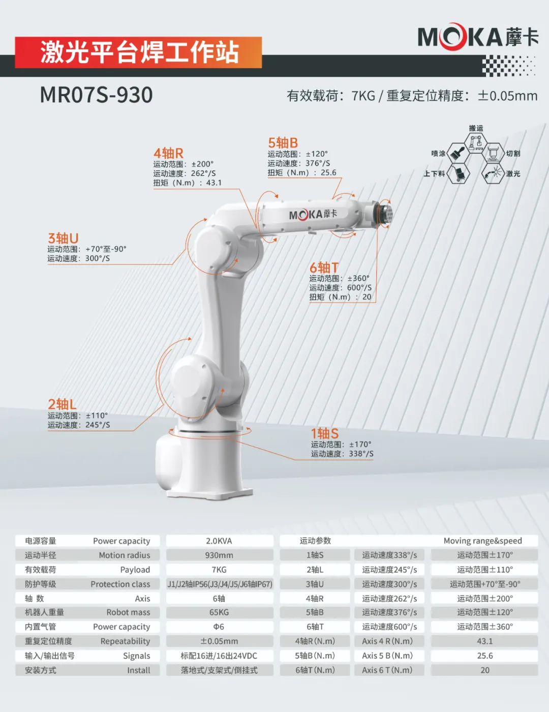 由MR07S-930為核心搭建的激光平臺焊工作站,主要針對精密零件、鈑金焊接等市場,能有效替代人工焊接或者專機(jī)焊接,減輕人工負(fù)擔(dān),為企業(yè)降低成本。